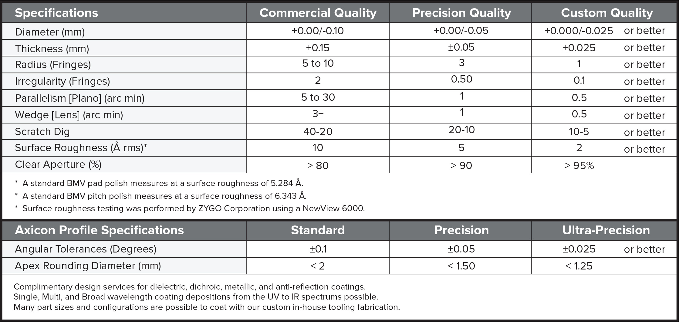 To complement our R&D and prototype manufacturing activities, BMV has significantly expanded its production equipment to meet growth demands of existing and new clients. Volume manufacturing is accomplished through acquisition of new modern CNC optical fabrication tools, increased technical staff, and the addition of cleanroom facilities for optical assembly. Our strong focus on production efficiencies and manufacturing techniques are the key to our success. Volume manufacturing may range from 5, 10, 50, or more units to 1000’s of components depending on the nature of the product.